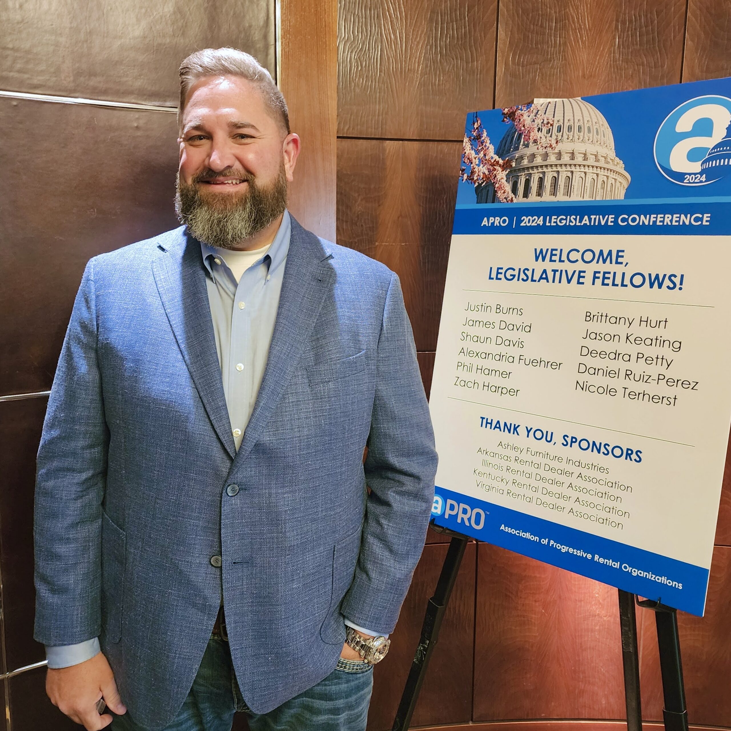 Phil Hamer, Director of Operations at Buddy’s Newco LLC dba Buddy’s Home Furnishings’ corporate office, was among this inaugural class of Fellows. Hamer began his rent-to-own career 23 years ago with his first full-time job post-college, then found himself inspired by the opportunity to help people access products they need, while building lasting relationships within his community. It was Hamer’s community bonds and commitment to RTO that propelled him to attend APRO’s Legislative Conference.